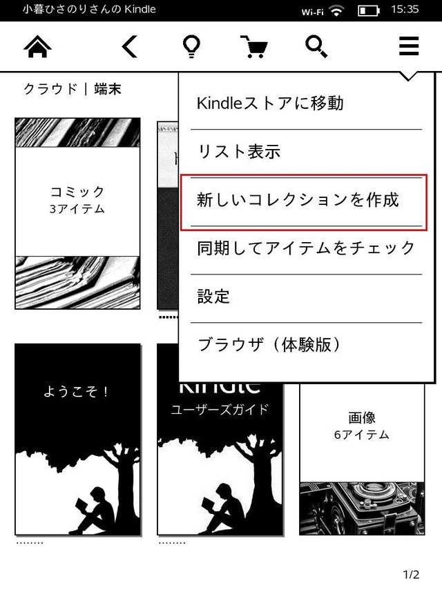 ホーム画面にずらーっと購入した書籍が並ぶと検索性が落ちてしまいます。お世辞にもKindle Paperwhiteは画面切り替えが早いとは言えないので、なるべく画面切り替えは少なく済ませたいところです。そこで書籍を「コレクション」単位にフォルダ管理しておきましょう。