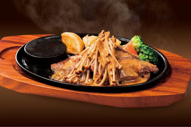 普段は、ぜいたく感が楽しめるメニューとして提供されている“リブロインステーキ”ですが、フェア期間はきのこを使った季節感のあるメニューや、鉄板料理に追加して楽しめる“追い肉リブロイン”など、様々なバリエーションで提供されています。