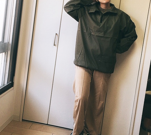今回は、アウトドアでもおしゃれに決まるカーキのLサイズを選びました。