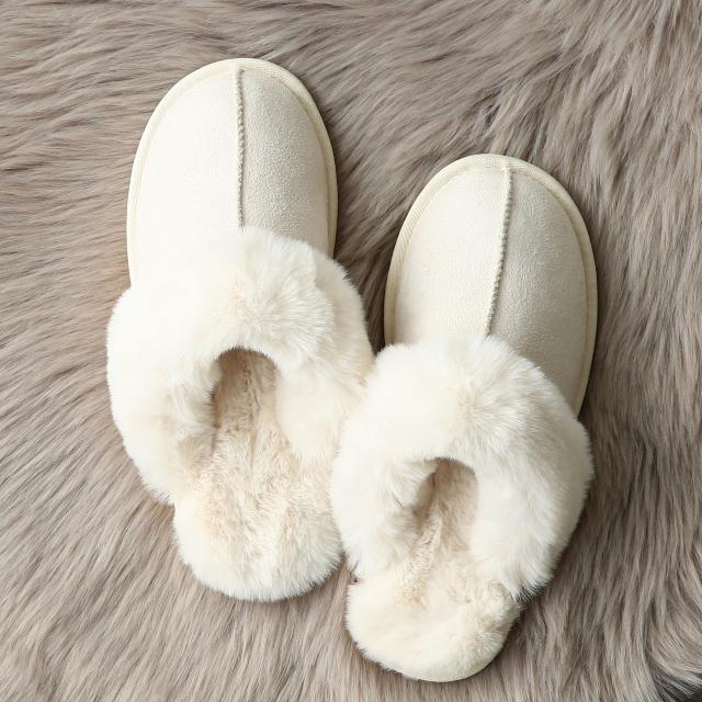 ふわふわのファーが優しく足元を包み込むあったかルームシューズです。