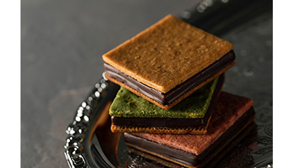 ショコラサンドは、口当たりなめらかで、濃厚なガナッシュをサクサクの自家製クッキーでサンドした「カカオバニラ」、チョコレートのほろ苦さとフランボワーズの酸味がマッチする「フランボワーズ」、ピスタチオ独自の塩味とチョコレートの甘さが引き立て合う「ピスタチオ」の3種類を用意している。価格はいずれも380円。