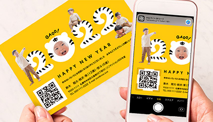 なお、デザイン面には1デザインあたり最大2つまでのQRコードを配置可能で、QRコードは色やサイズを変えられるので、オリジナリティあふれる動画付き年賀状を、簡単に作成できる。