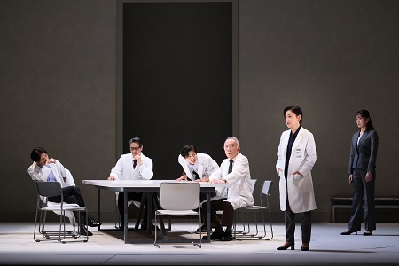 この作品の核となるのは、やはりルースの存在だ。トップクラスの医療施設の所長にして医師、というある意味で画一化してしまいそうな人物を、ここまで多面的に、生きた人間として演じられるのは、大竹をおいてほかにいないだろう。さらに言えば、ルースの強さと弱さを表現したかのような、服部基の照明の力も大きい。そんな大竹や橋本さとしといったベテラン陣の中でもひけをとらず、若手の俳優陣がそろって良いのが頼もしい。同じチームの医師であるコプリー役の宮崎秋人、若手医師(役名そのままだ)役の那須凛、ルースの小さな友人サミ役の天野はな。栗山の演出のもと、確実に成長した姿を見せてくれており、そういったところにも注目してほしい。