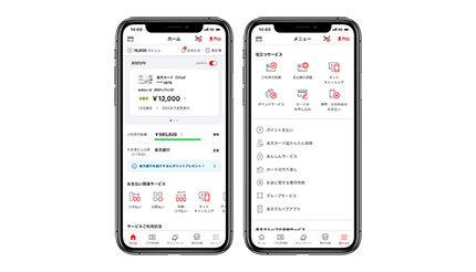アップデートによって、新たに追加されたホーム画面では、請求金額や利用可能額、引き落とし口座などをひと目で確認することができ、支払い関連サービスからはポイント支払いやリボ払いといった支払い方法を簡単に変更できる。また、画面左上には総保有ポイントが表示され、タップするとポイント数の内訳確認も可能なほか、支払いやキャンペーンなどに関する「お知らせ」は画面右上に配置し、未読メッセージ数も表示する。