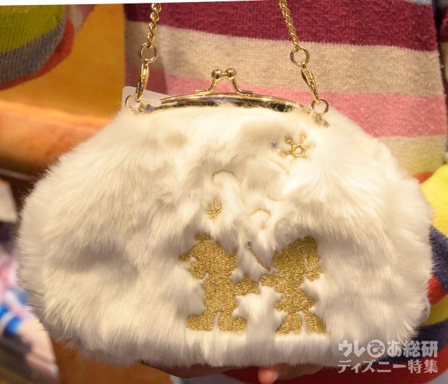 リュックサックと同様、刺しゅうされたゴールドのミッキーとミニーがかわいいポーチ。