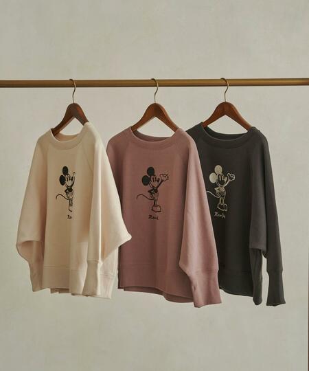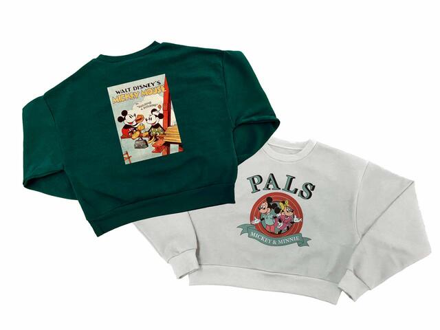 少しヴィンテージライクなミッキー&フレンズのプリントの裏起毛トップス。