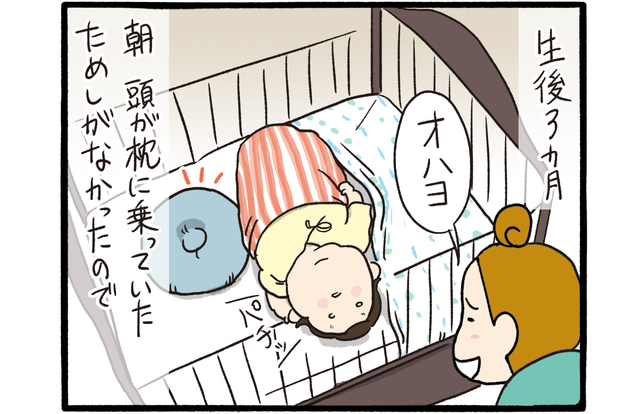 カリスマナニー・ジーナがネントレ本の寝具リストに枕を入れなかった理由が今なら納得できます。枕に乗り上げてしまったりして、まめの楽な寝姿勢を邪魔していたことも多々ありました。疑ってごめんよジーナ…(笑)。