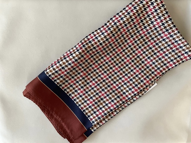 こちらも「イネス・ド・ラ・フレサンジュ」とのコラボレーションアイテムのひとつでチェック柄のシルクプリントスカーフです。