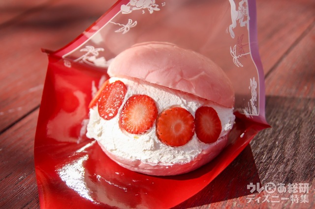 ピンクのバンズには、たっぷりのマスカルポーネクリーム&ホイップクリームがサンドされています。