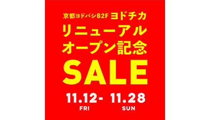 ヨドバシカメラは11月12日~28日の期間に、ヨドバシカメラとファッション、雑貨、飲食店などの専門店が一体となった「京都ヨドバシ」(京都府京都市)の地下2階「ヨドチカ」に、京都府では初出店となるスーパーマーケット「ロピア」のオープンするとともに、「ヨドチカ」のリニューアルを記念した特別セールを開催している。