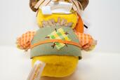 服のお腹部分には、カボチャのようなワッペンが縫い付けられています。