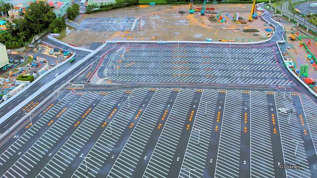 まだ駐車場が広がっており、左端では東京ディズニーランドの『美女と野獣』エリア(当初は2020年4月オープン予定)の建設が行われている様子です。