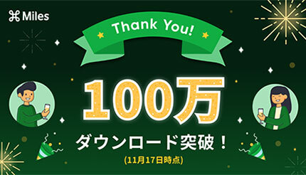 「Miles」ダウンロード数100万人突破、マイルが20倍になるキャンペーン