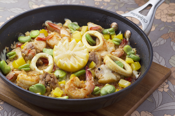 本来はパエリアは生米から作るので時間がかかるもの。でも、冷凍庫にある冷ごはんを活用して、フライパンひとつでできる本格パエリアです。