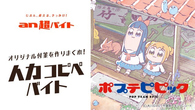 さまざまなアニメや映画などとのコラボ企画を仕掛けてきた「an超バイト」から、アニメ化が決定している人気クソ漫画「ポプテピピック」とのコラボ企画が始動。日給5万円のアルバイトを募集しています。