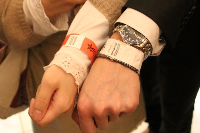 “街コン”では基本、開始30分後より複数の店舗を自由に行き来することができるため、参加者は腕に付けたリストバンドを参加証代わりに入店します。そのリストバンドに書かれたナンバーが同じ相手を見つけ出した方にはなんと先着順で豪華プレゼントが当たるというのです。通常、総勢300名を超えるイベントで相手を見つけ出すことはなかなかに難しいと言われているのですが、この日はバレンタインともあって運命の相手を見つけ出すペアが続出!