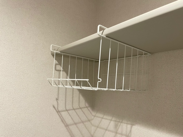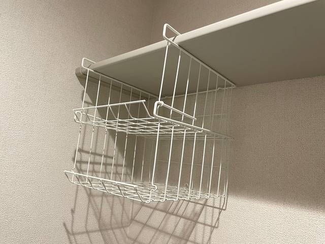嬉しいところは、掛けたバスケットの下に、さらにバスケットを掛けられるところ。