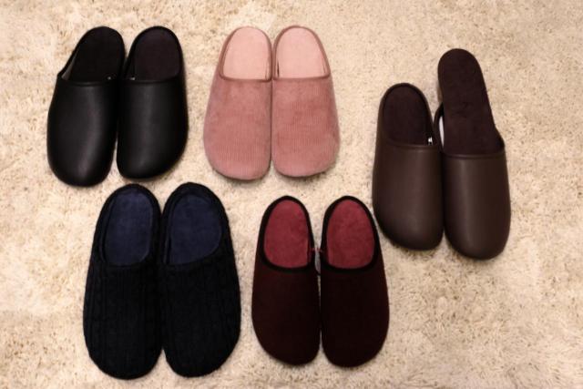 コーデュロイやフェイクレザーなど高見えしてかわいいルームシューズ(全品 ¥1500)が今季も登場。今シーズンの注目ポイントは、インソールが洗えることなんです!