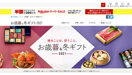お歳暮や冬ギフトを提案している楽天市場