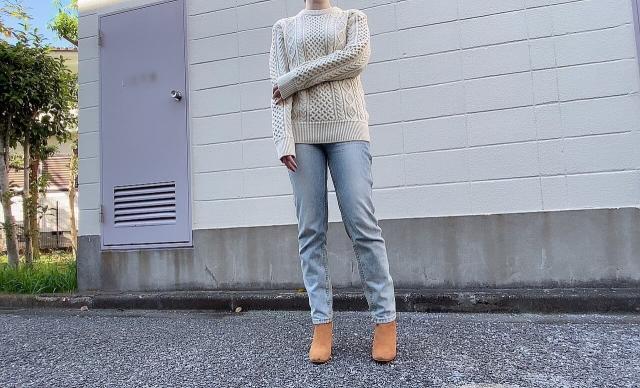 パンツスタイルは、シンプルにヴィンテージ感のあるテーパードシルエットのデニムと合わせてみました。