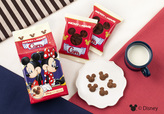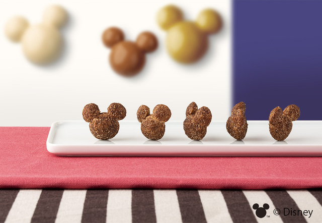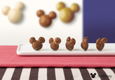 ぷっくり3Dミッキーアイコンの⽣地に、ミルクチョコレートをとろりがけ。ココアパウダーでくるんで、まろやかなコクのショコラ味に仕上げました。