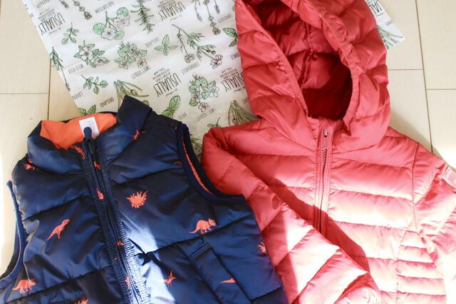 筆者はLLサイズを購入。さっそく中に子どものダウンジャケットとダウンベストを入れて圧縮してみました。