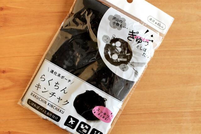「らくちんキンチャク」という商品名の通り、細々したものをさっとひとまとめにできる、便利なポーチです。