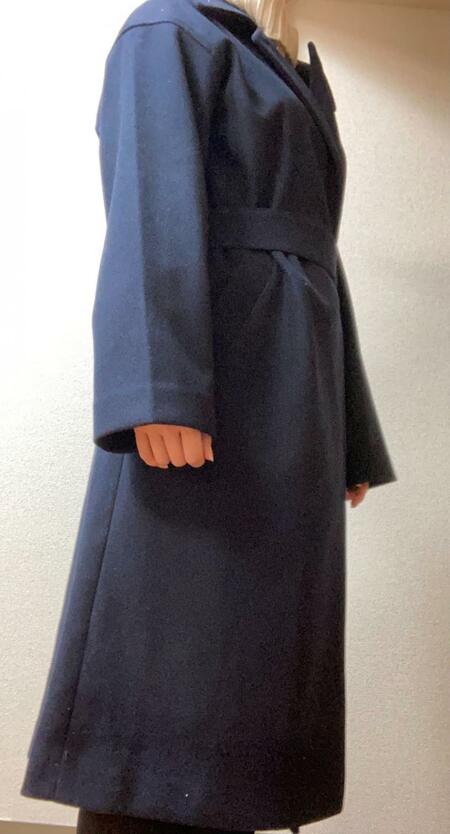 質感は柔らかく、軽い印象です。手触りがいいので、着心地も抜群。薄めのコートなので、本格的な冬には厳しいかもしれませんが、朝と昼で体感温度が異なる日にはもってこいのコートだと感じました。
