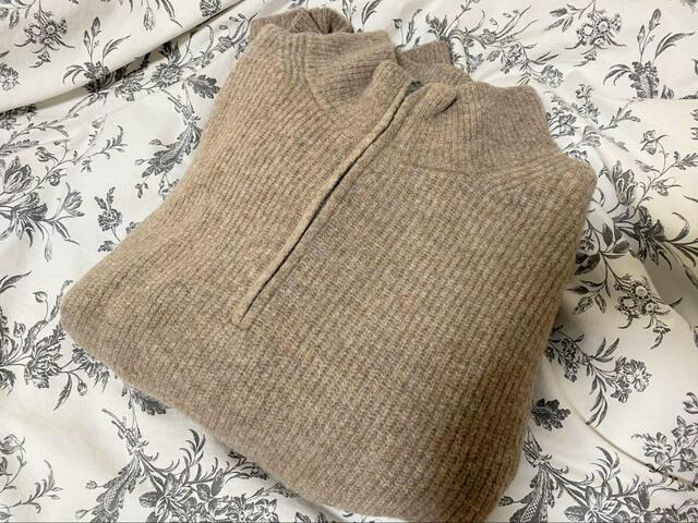 この後ご紹介するGUのセーターと比べると、素材はこちらのセーターの方が軽くて柔らかいです。