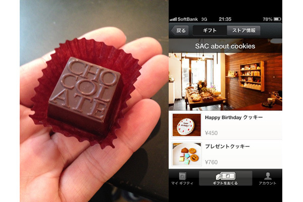 iPhoneから手軽にカフェのドリンク、スイーツ、小物などを贈ることができるギフトサービスアプリ。相手の住所がわからなくても、アドレス帳やFacebook・Twitterアカウントから選ぶことができます。