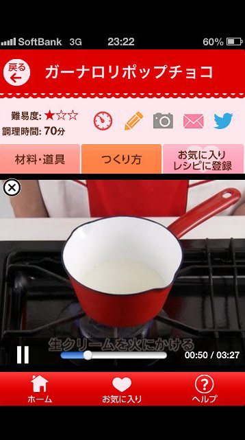 レシピには、作り方の説明に加えて動画で作り方を見ることができるので、