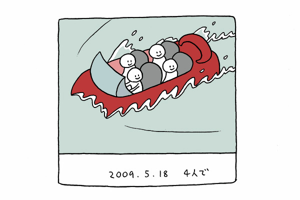 水しぶきをあげて絶叫しながら着水するところを写真に撮られ、後から購入するというシステムです。その時はそうでもありませんが、何年も経ってから眺めるとなかなか良いものです。