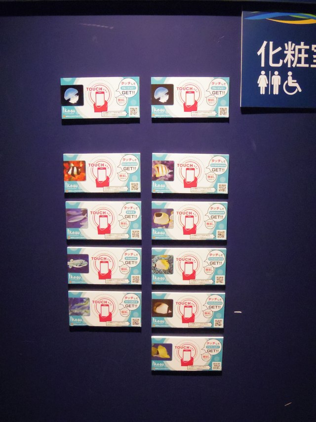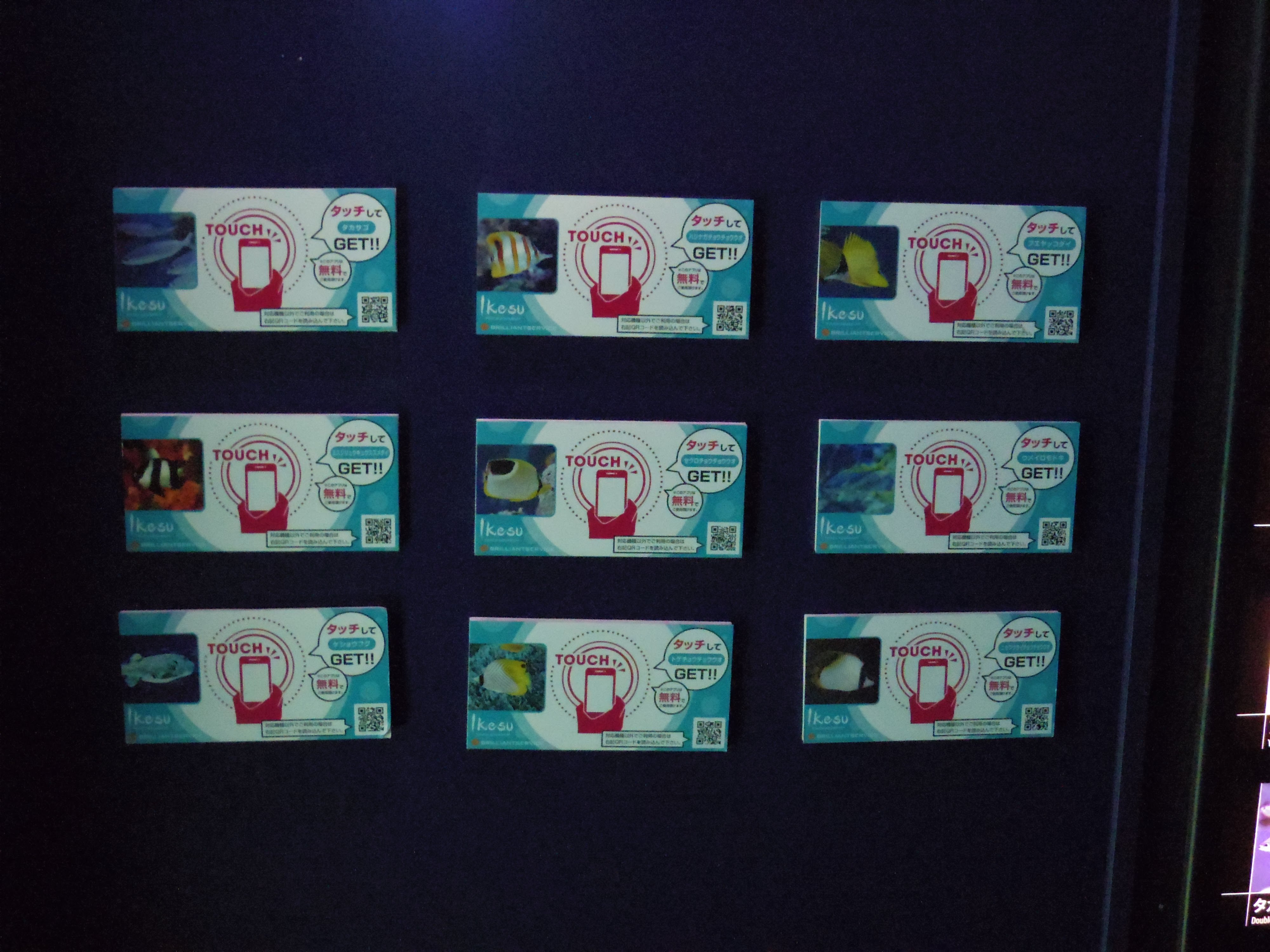 タグは水槽の脇やブースの入り口などに展示されています。割りと目立つようになっていますのですぐに気がつくかと。小さなお子さんを連れたママが、Ikesuで魚を集めていましたよ。
