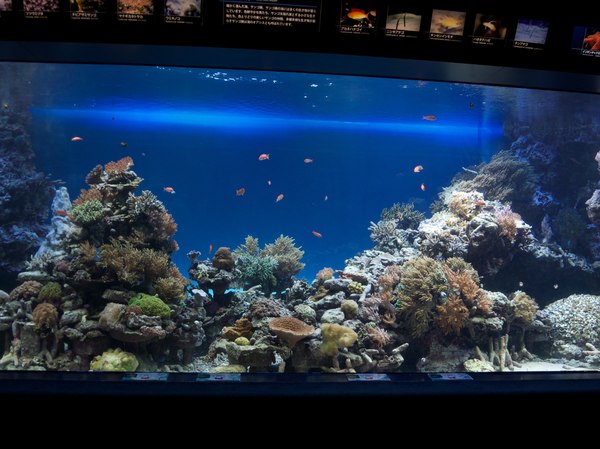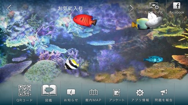 おおー、大きな水槽。やっぱり水族館はいいなー。30種類くらいの魚のデータをダウンロードできるらしいのですが、どこでゲットすればいいんでしょうか。