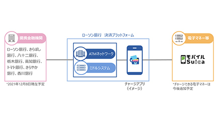 ローソン銀行と東日本旅客鉄道(JR東日本)は、ローソン銀行が新たに提供するチャージアプリと、JR東日本が提供するアプリ「モバイルSuica」を連携することで、銀行口座から交通系電子マネーのモバイルSuicaにチャージできるサービスを2022年春をめどに開始する。