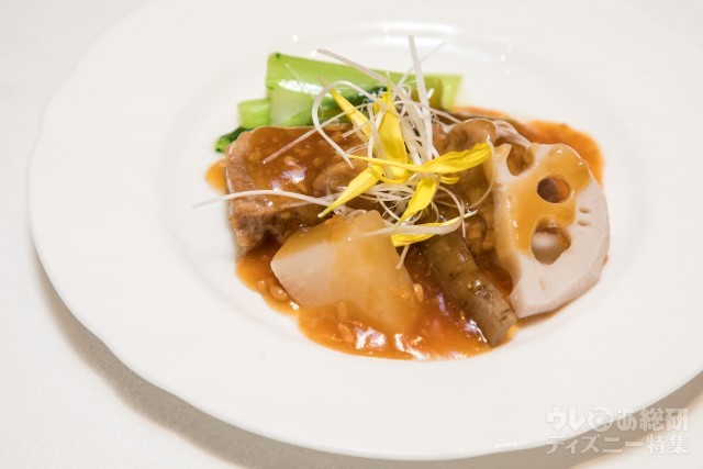 “クリスマス・ウィッシュ” ランチコースのメインは、「豚肉と根菜のスチーム 醤油麹ソース」。