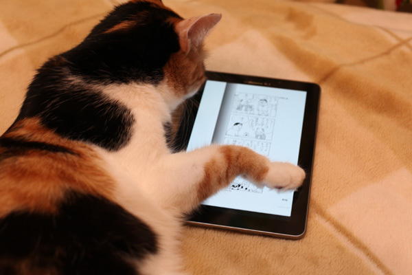「タブレットで電子書籍を読む猫」ペンネさん 拡大画像表示