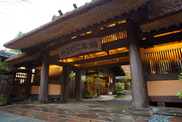 お屋敷のような重厚感のある「やまびこ旅館」(熊本県阿蘇郡)の正面口