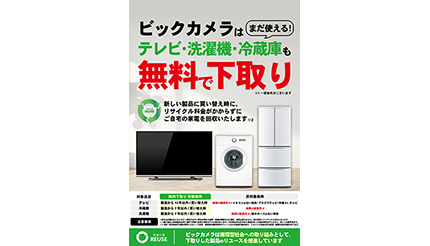 対象店舗(ビックカメラ池袋本店/ビックカメラ大宮西口そごう店、順次拡大予定)で大型家電の買い替え時に下取りを申し込むと、配送と同時に不要となった家電の下取りを無料で行う。リサイクル料金がかからずに、自宅の家電を回収しリユースすることができる。