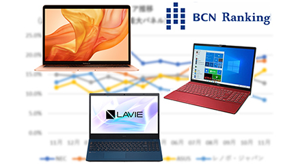 *「BCNランキング」は、全国の主要家電量販店・ネットショップからパソコン本体、デジタル家電などの実売データを毎日収集・集計しているPOSデータベースで、日本の店頭市場の約4割(パソコンの場合)をカバーしています。