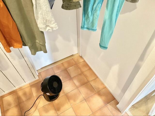 そうすることでサーキュレーターの力強い風が洗濯物に当たり、短時間で乾かせますよ。