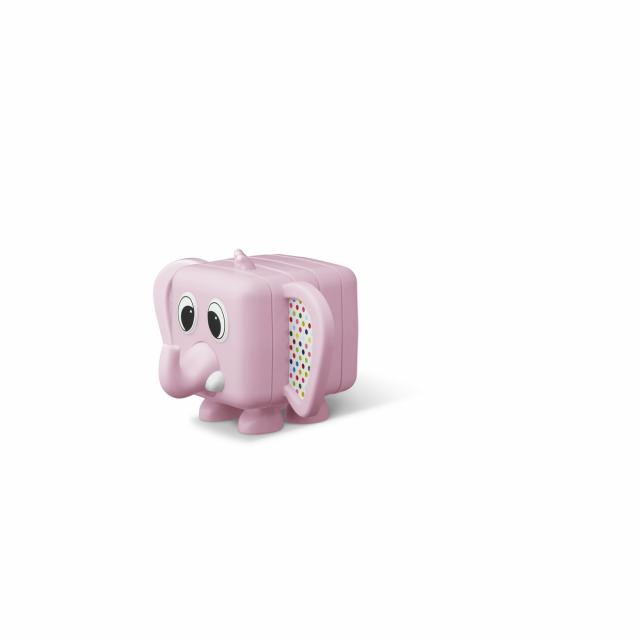 ピンク色の体と大きな耳がチャーミングな、ゾウがモチーフのブロックです。