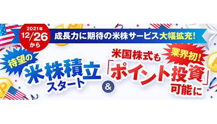 楽天証券は、米国株式取引サービスを拡充し、円貨決済時に「楽天ポイント」を1ポイント1円として購入代金・取引手数料の全額または一部に利用できる「ポイント投資」サービスや、「米株積立」サービスなどを2021年12月26日(予定)に開始する。米国株式取引にポイントが利用できるのは、国内主要証券で初めて。