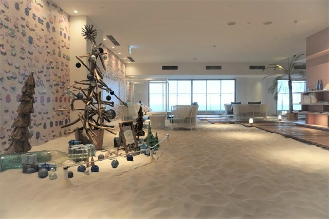 そこかしこにビーチチェアやカバナが置かれ、まるでビーチにいるかのような気分に浸れます。