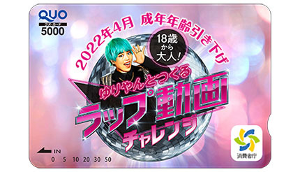 吉本興業は12月16日に、2022年4月に成年年齢が20歳から18歳に引下げられることにともない、広く理解向上を図ることを目的としたキャンペーン「18歳から大人!ゆりやんとつくるラップ動画チャレンジ」において、政府広報用動画に採用された人全員に、5000円分のオリジナルQUOカードをプレゼントすると発表した。