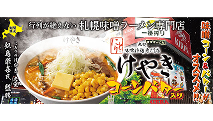 「ラーメンは世界に誇る日本のエンターテインメントである!!」をコンセプトに「らあめん花月嵐」のブランド名で219店舗(海外25店舗含む)を運営するグロービート・ジャパンは、「札幌味噌ラーメン けやき」を12月15日から国内の花月嵐で期間限定販売する。