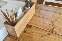 このNウォームを使用した着る毛布シリーズはさまざまな色柄があり、迷いましたが、今回は普段使いしやすそうなシンプルなボーダーデザインにしてみました。