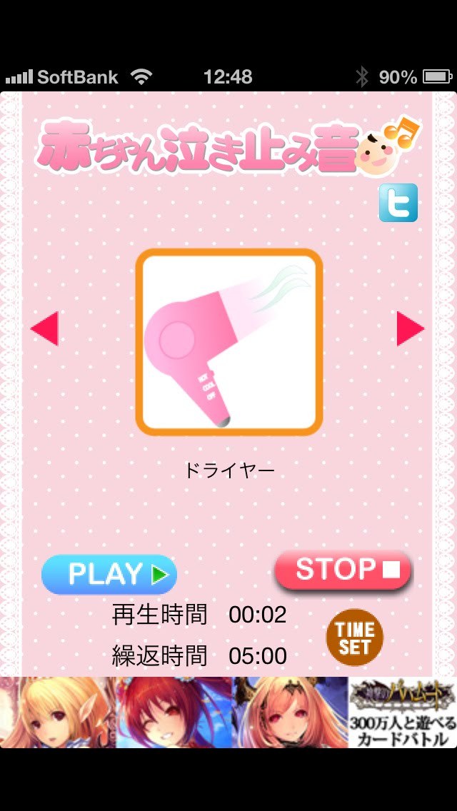 そんな赤ちゃんあるあるを使ったアプリがこちら『赤ちゃん泣き止み音』。「ビニール袋」「テレビ」「掃除機」「ドライヤー」「麺すすり」「水すすり」などの生活音を再生できます。