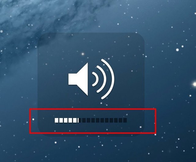 「command」+「shift」+「F11」または「F12」キーを押すと、音量調整が1/4段階ずつ行えます。表示される調整バーが1/4ずつ表示されます。