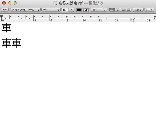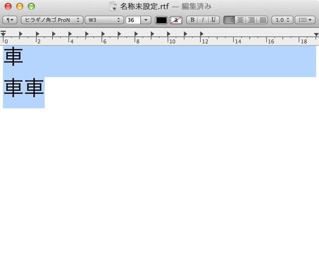 テキストエディットを開き、「車 車 車」と入力しましょう。
